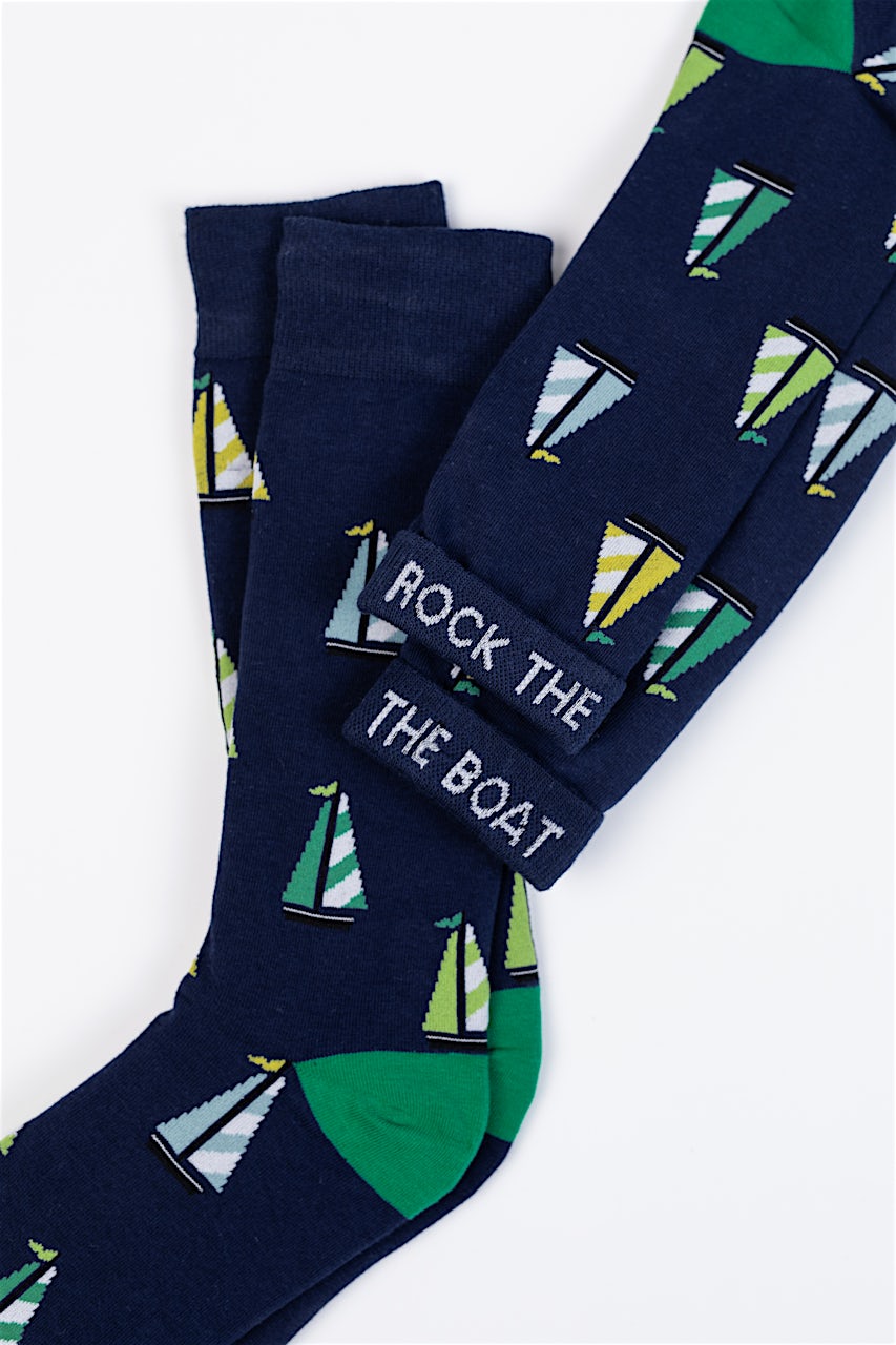 Make waves with Alynn’s “Rock the Boat” carded cotton trouser socks, featuring playful sailboats gliding across the fabric. Soft, breathable, and comfortably snug, they’re perfect for boating enthusiasts, summer adventures, or anyone who likes to keep their style afloat with a touch of nautical fun.